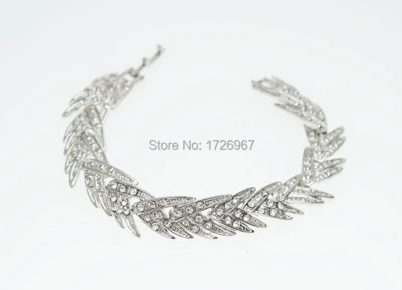 Shining crystals with the dazzling view always capable to drag the attention of people. This leaf pattern jewelry with the shining crystal makes it more obvious. This shining silver plated bridal j...