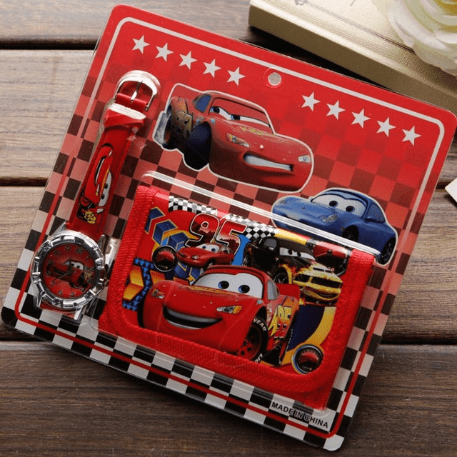 If you are looking for a birthday gift for your child or any other children, you can definitely have a look at this DISNEY Cartoon Car Story Wallet Quartz Leather Children's Watch Set.