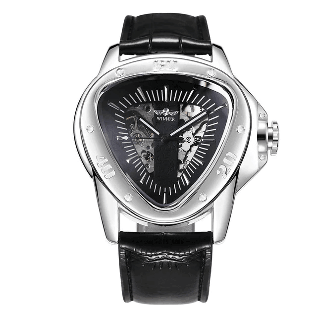 In menswear, it's often the details that really bring an outfit to life. One of the most time-tested ways: a great watch. And while a timepiece can certainly be a lifelong investment, it can also be a simple accessory that wears easily and doesn't require an entire paycheck (or three) to afford. Here is T-WINNER Racing Triangle Skeleton Design Mechanical Watch For Men to blend with any of your outfits.