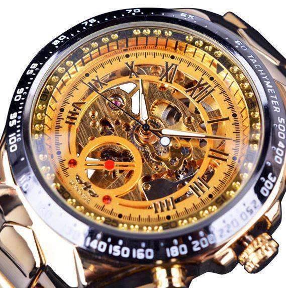 Mechanical watches may be termed as old-fashioned but they are the valuable and classic possessions at your wrist. Seasonal Bezel Golden Skeleton Design Waterproof Mechanical Watch For Men will not only uphold your fashion statement but also presents the delicacy of your taste.