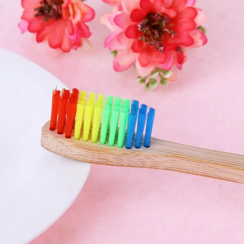 Rainbow Colored Bristle Wooden Toothbrush Oral Hygiene Product Rainbow Colored Bristle Wooden Toothbrush Oral Hygiene Product