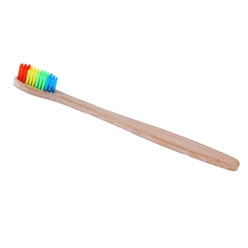 !Almost 50 million pounds of plastic toothbrushes make it to our landfills every year. All that plastic can take up to 1,000 years to decompose and can even leak pollutants into the surrounding soil and water. So, why not start using the VKTECH Rainbow Colored Bristle Wooden Toothbrush Oral Hygiene Product!